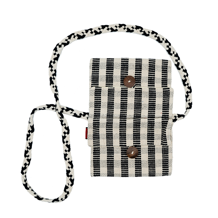 Lined Black and White Sling Pouch | 100% Cotton & Handmade | Strong & Stylish